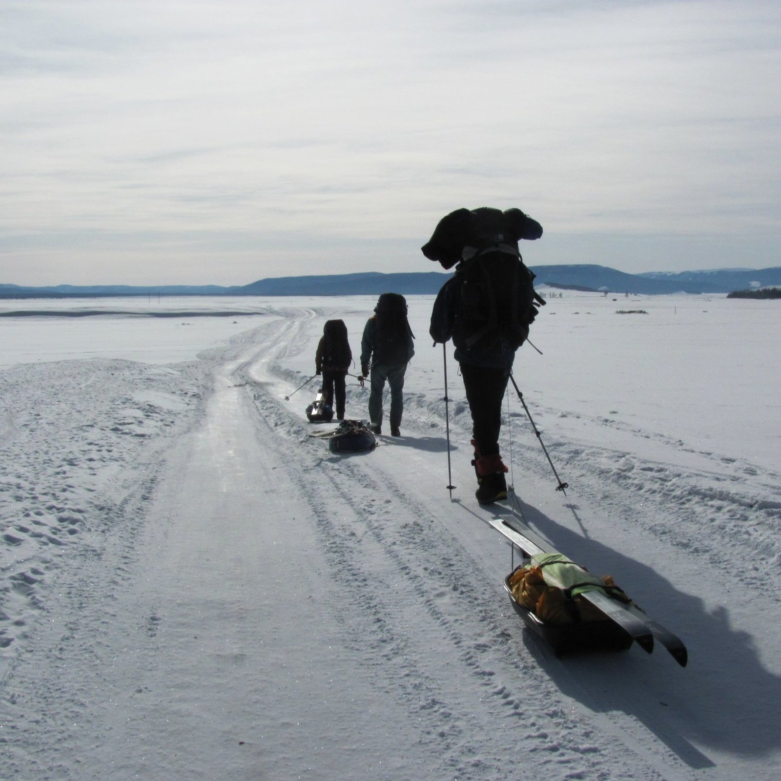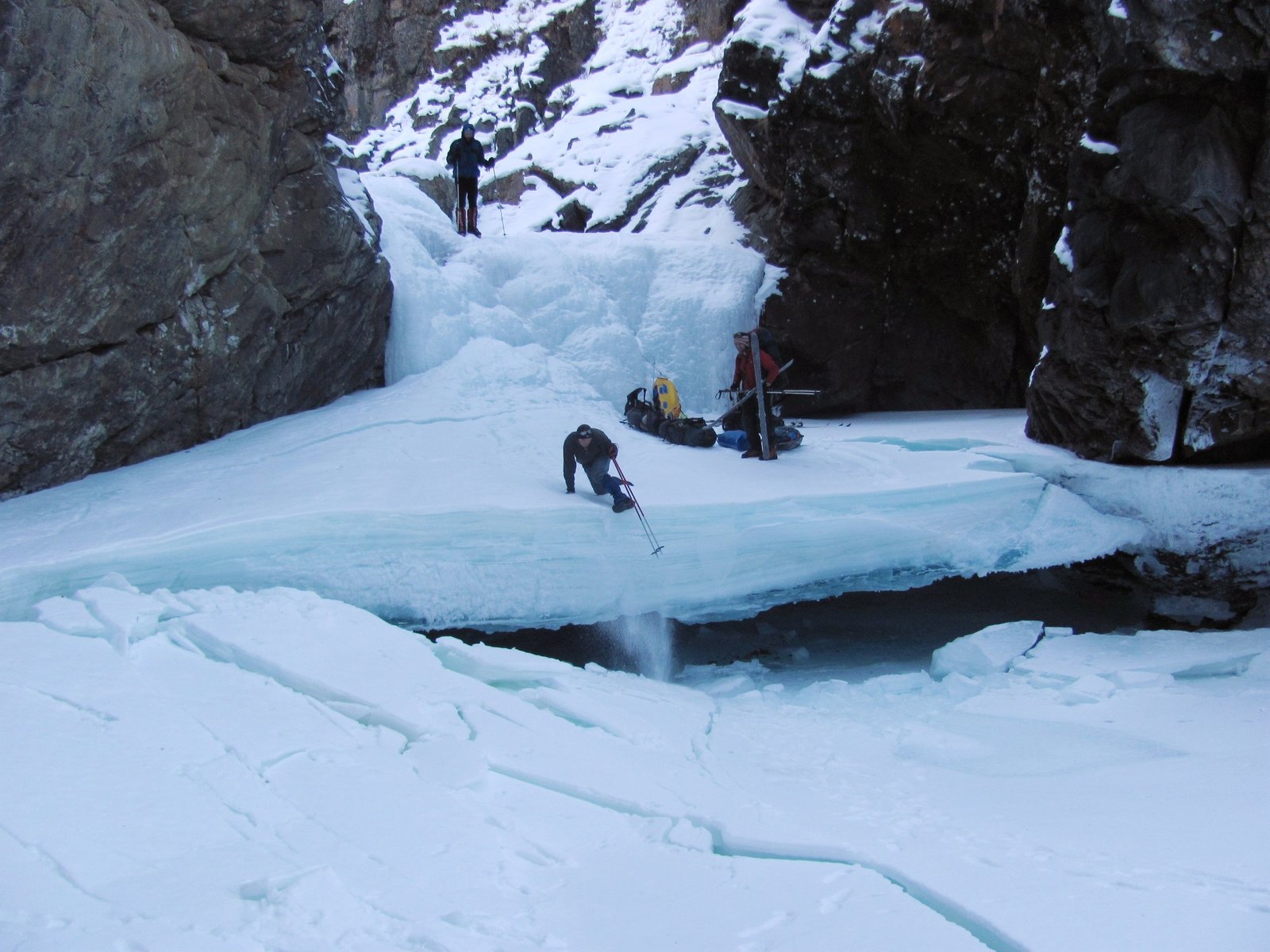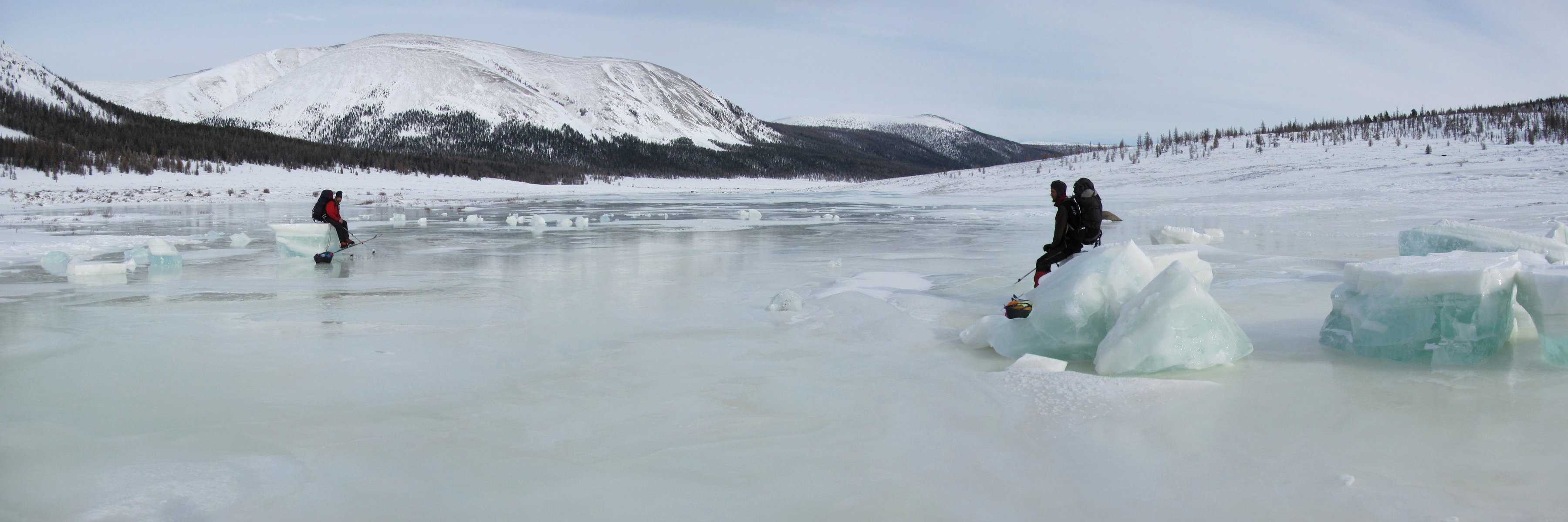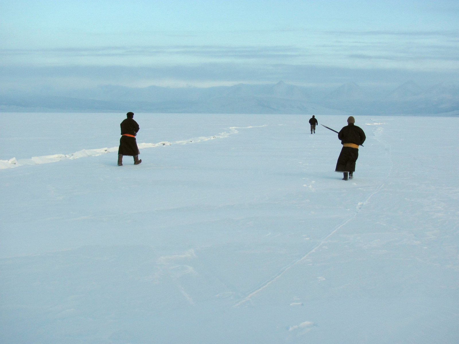 Озеро Хубсугул, поиск места, где можно переехать через трещину, Монголия, 25 февраля 2011