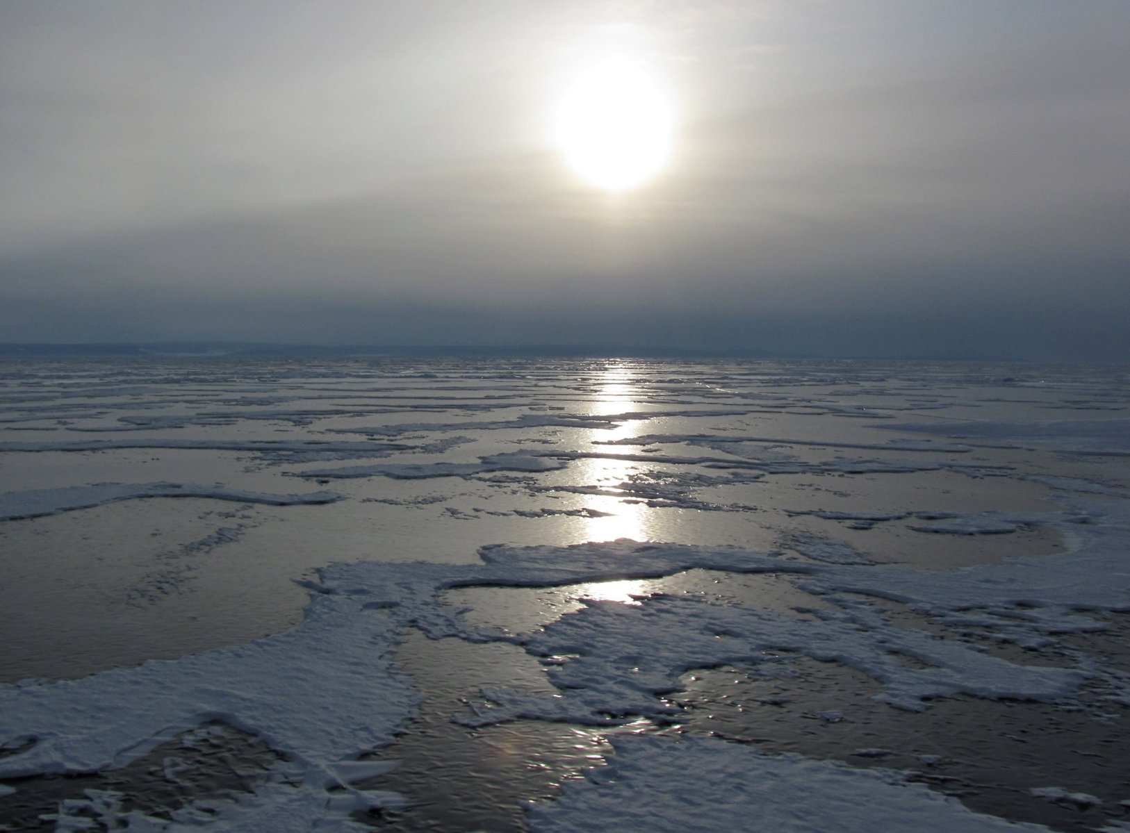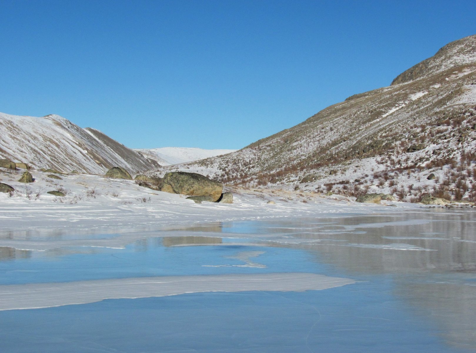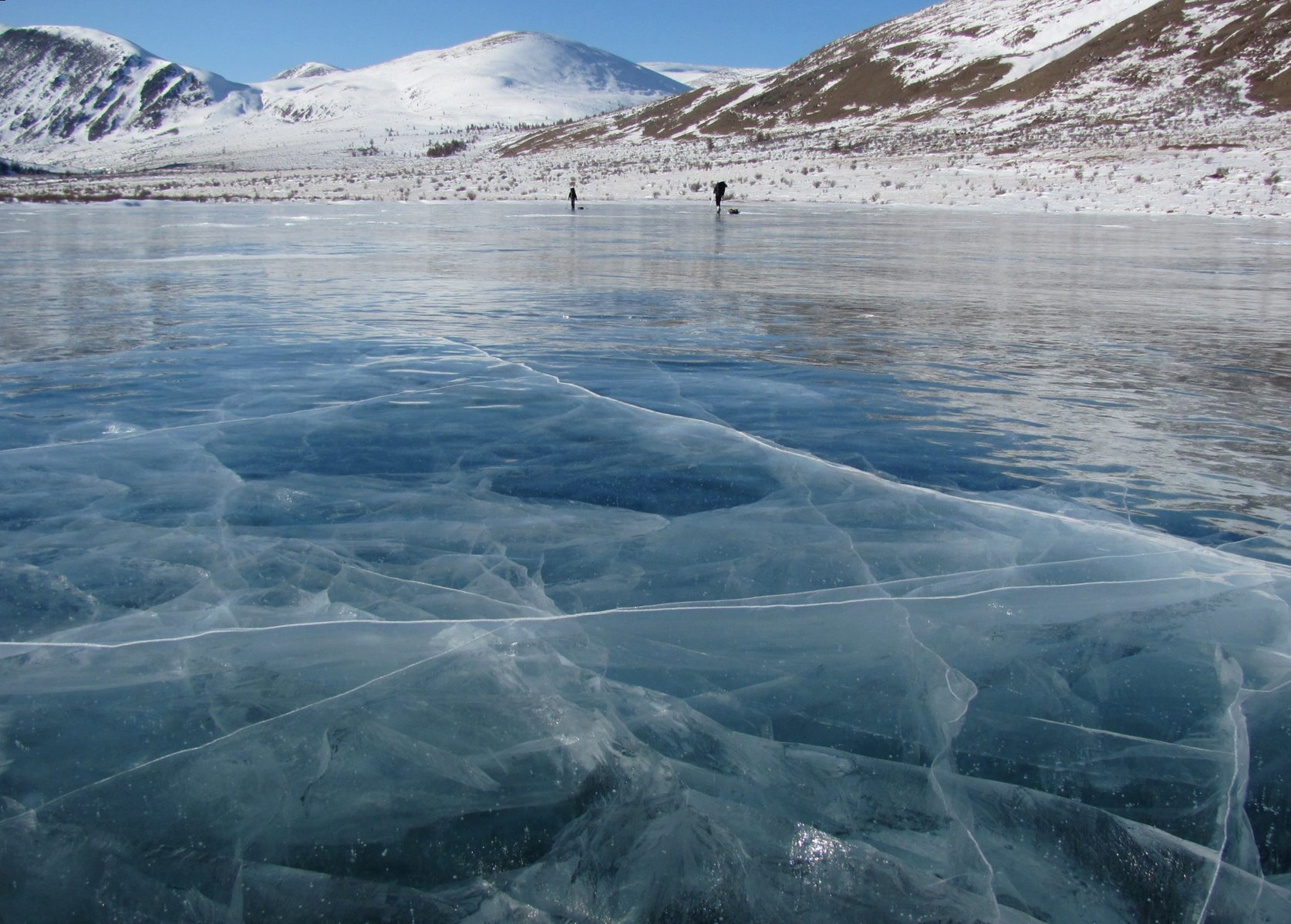 Лед небольшого озера, Монголия, 5 марта 2011