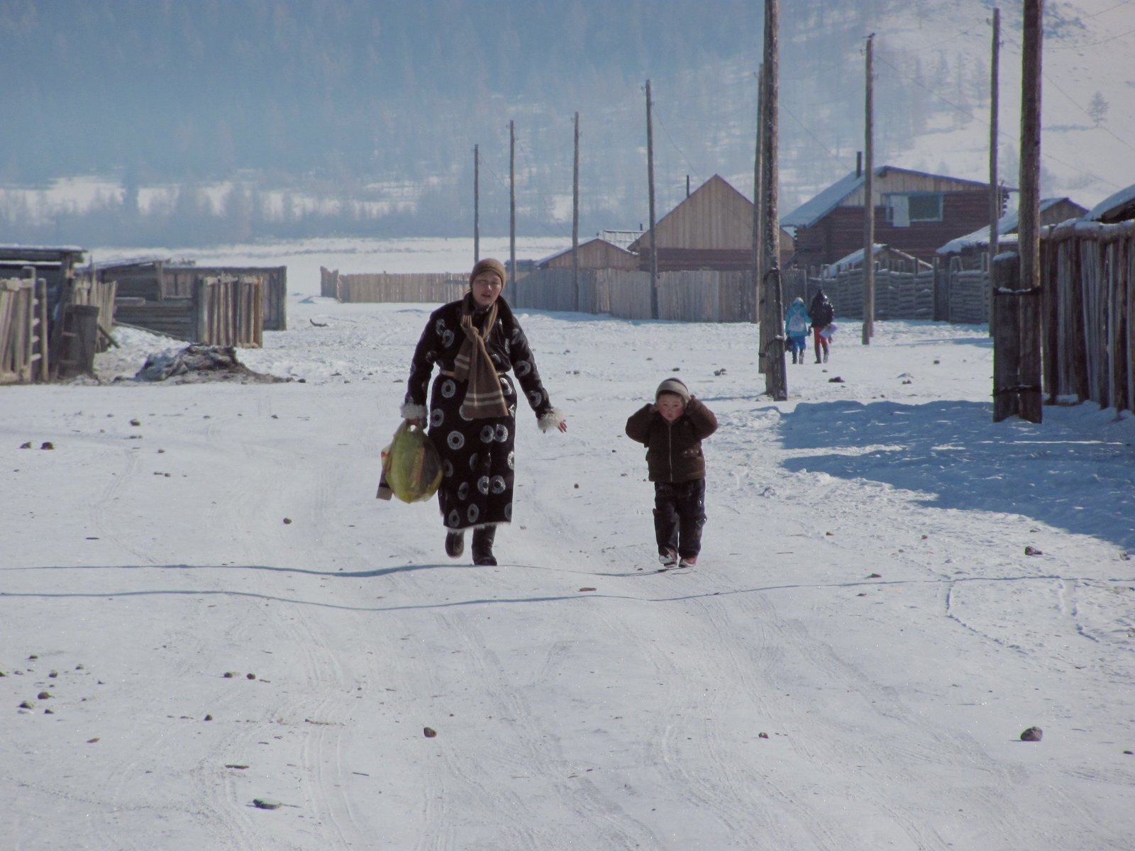Поселок Рэнчин-Лхумбе в Дархатской котловине, Монголия, 25 февраля 2011