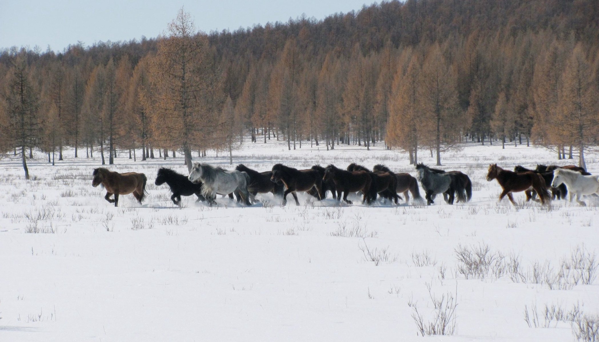 Лошади в Дархатской котловине, Монголия, 4 марта 2011
