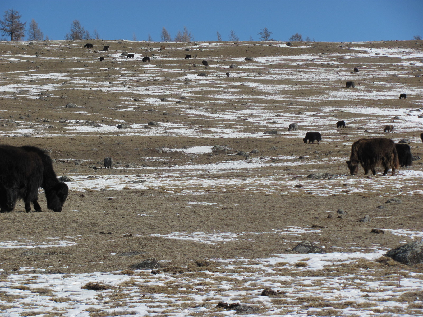 Пасущиеся яки, Монголия, 5 марта 2011