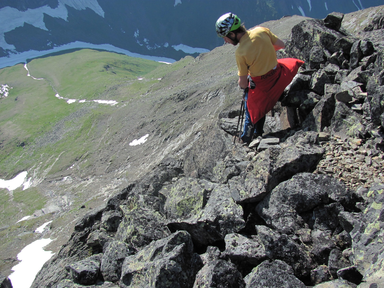 Спуск с вершины пика Грандиозный, Саяны, 13 июля 2011